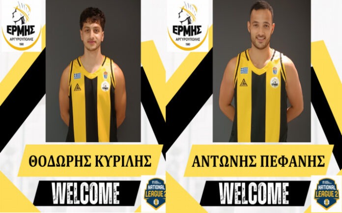 Αλλάζει επίπεδο ο Ερμής Αργυρούπολης, εντάσσοντας στο ρόστερ του, τους Θοδωρή Κυριλή (1,90 – 25 ετών) και Αντώνη Πεφάνη (1,99 – 27 ετών).