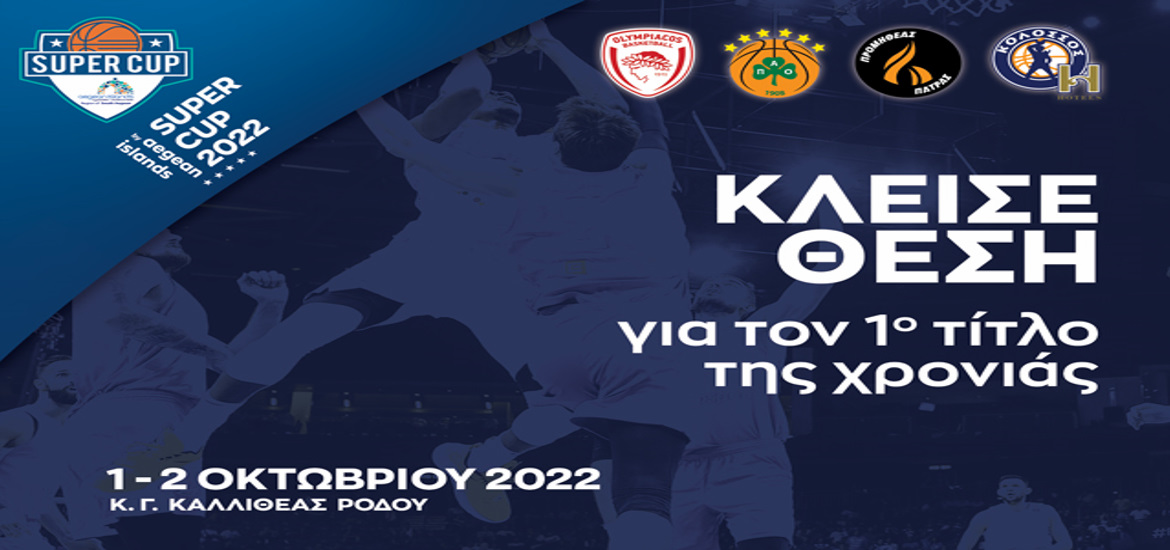 «Η αντίστροφη μέτρηση για τη μεγάλη γιορτή του Super Cup 2022 by aegean islands στη Ρόδο έχει ξεκινήσει και σε αυτό το πλαίσιο επισημοποιήθηκαν οι ώρες των αναμετρήσεων για το ερχόμενο Σαββατοκύριακο καθώς θα διεξαχθούν στις 17:00 και στις 21:00 και θα καλυφθούν τηλεοπτικά από την ΕΡΤ3. Συνεχίζεται η διάθεση των εισιτηρίων από τα γραφεία της ΚΑΕ Κολοσσός H Hotels...