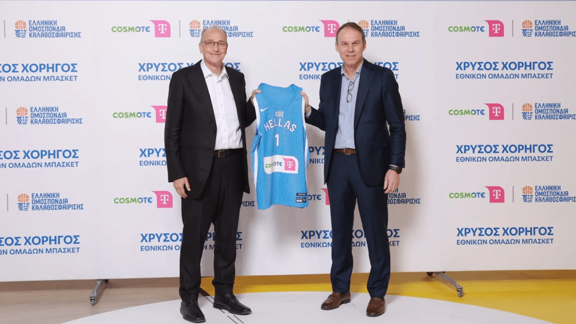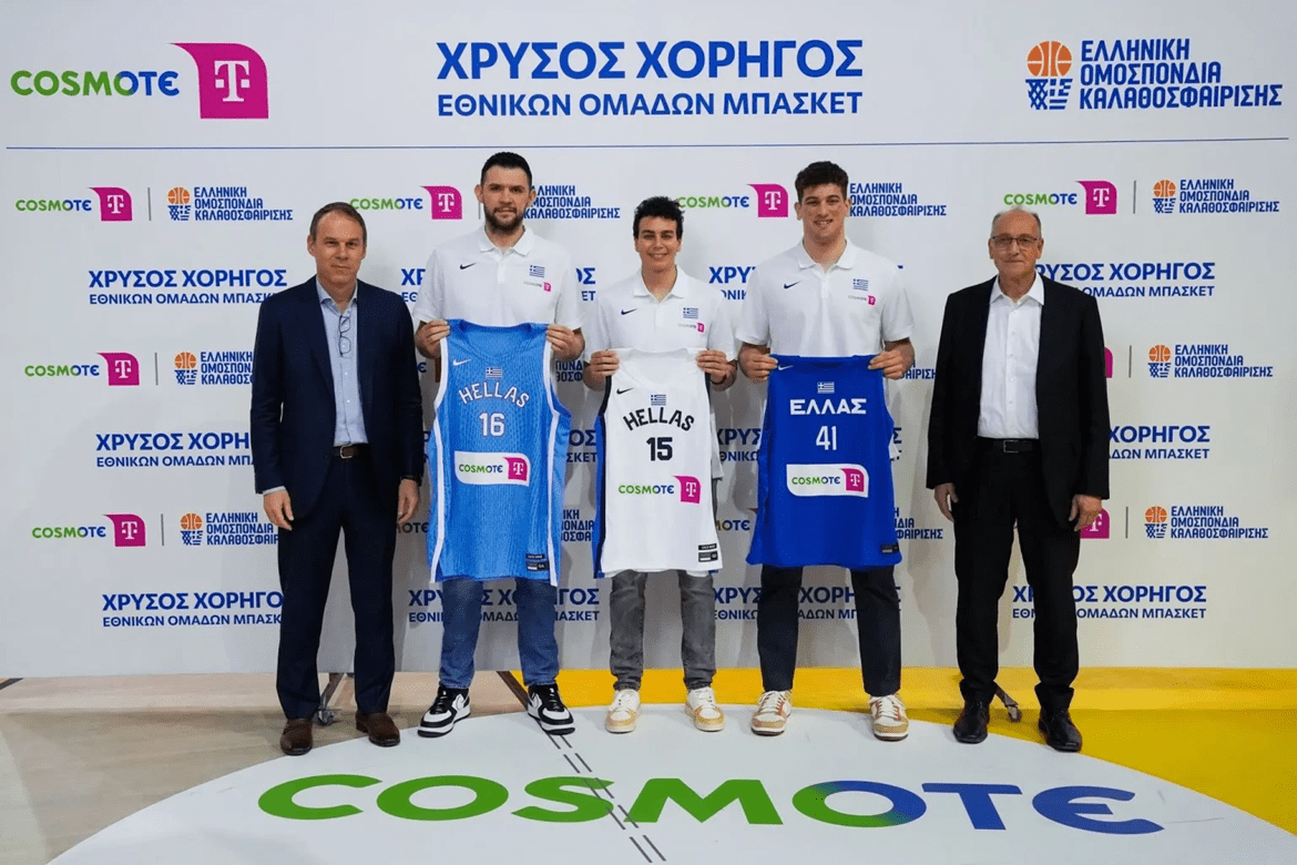 Χρυσός Χορηγός των Εθνικών Ομάδων Μπάσκετ (Ανδρών, Γυναικών και Νεών – U20, U18, U16) μέχρι και το 2030 θα είναι η COSMOTE TELEKOM, η οποία αναλαμβάνει και Επίσημος Χορηγός της Ελληνικής Ομοσπονδίας Καλαθοσφαίρισης (ΕΟΚ). Ως Χρυσός Χορηγός των Εθνικών Ομάδων Μπάσκετ η COSMOTE TELEKOM θα προβάλλεται στο μπροστινό μέρος της αγωνιστικής φανέλας.