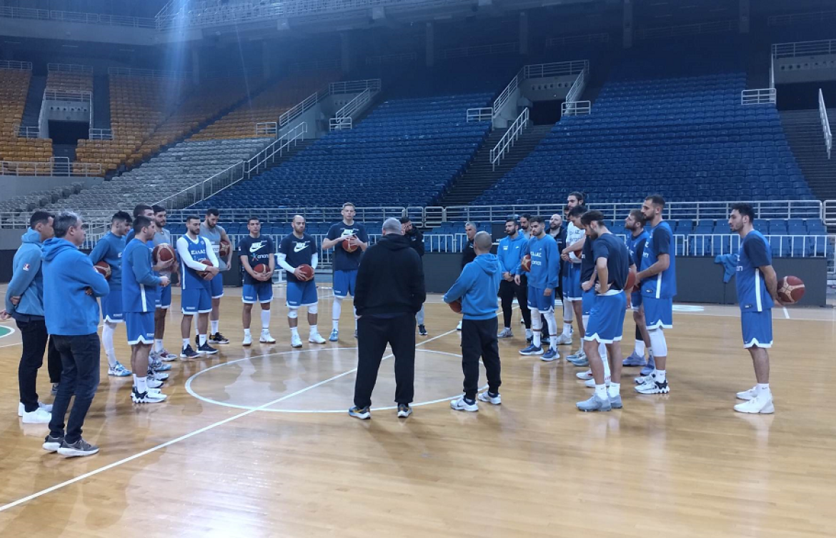 Άπαντες παρόντες στην πρώτη προπόνηση της Εθνικής Ανδρών εν όψει του τελευταίου "παραθύρου" της FIBA για το Παγκόσμιο Κύπελλο 2023, με το αντιπροσωπευτικό μας συγκρότημα να προπονείται στο ΟΑΚΑ, παρουσία και των 17 παικτών που είχαν κληθεί.
