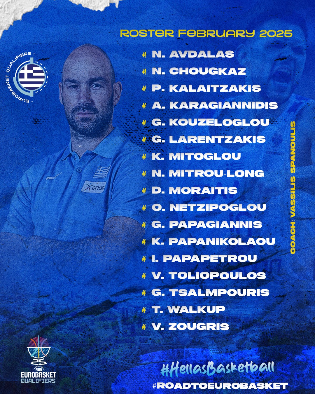Ο Βασίλης Σπανούλης ανακοίνωσε σήμερα την επιλογή του, 17 παικτών, για την προετοιμασία της Εθνικής εν όψει των δύο τελευταίων προκριματικών αγώνων για το Ευρωμπάσκετ 2025, στην Τσεχία και στην Πάτρα με την Ολλανδία.