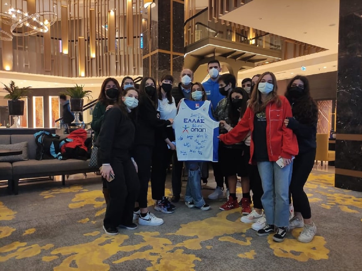 Γέμισε παιδικά χαμόγελα και ελληνικές φωνές το ξενοδοχείο όπου έχει καταλύσει η ΕΘνική στην Κωνσταντινούπολη. Λίγο πριν την αναχώρηση για την απογευματινή προπόνηση στο «Σινάν Ερτνέμ», πολυπληθής αντιπροσωπεία από το «Ζωγράφειο Λύκειο» της Πόλης, ένα σχολείο με μεγάλη ιστορία και έντονη δραστηριότητα, βρέθηκε στο πλευρό των Ελλήνων διεθνών για να εκφράσει τη συμπαράστασή τους.