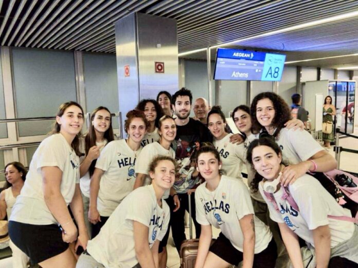 Η Εθνική Νέων Γυναικών συνάντησε στο αεροδρόμιο της Βουδαπέστης τον Μίλτο Τεντόγλου και τον Μανώλη Καραλή.