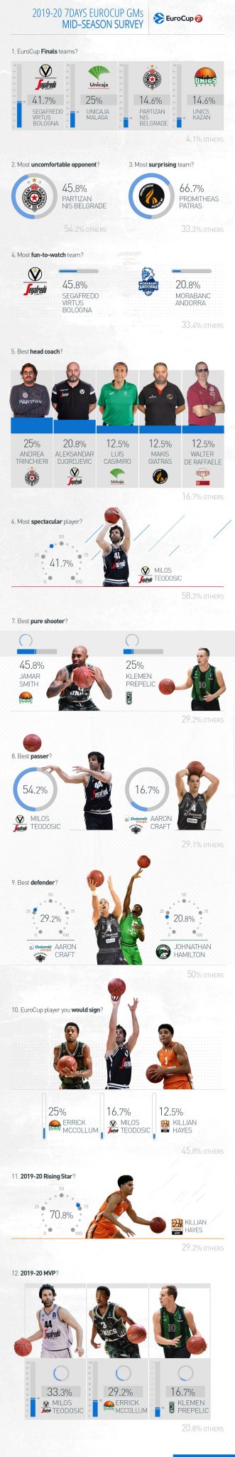 Οι μάνατζερ των ομάδων του EuroCup μίλησαν και έδωσαν τα προγνωστικά τους για τη συνέχεια της διοργάνωσης, ενώ παράλληλα ψήφισαν και αυτούς που θεωρούν καλύτερους μέχρι τώρα στη διοργάνωση. Παίκτες, προπονητές, σουτέρ...