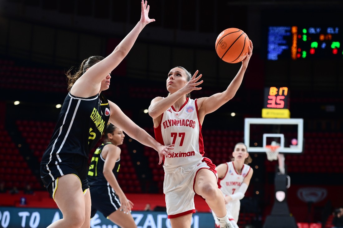 Ο Ολυμπιακός παρά την ήττα του στο ΣΕΦ με 80-75 από την Ελιτζούρ Ράμλα της Μποσγανά πήρε την πρόκριση στην επόμενη φάση έχοντας τη διαφορά υπέρ του (93-86 το προηγούμενο ματς). Οι «ερυθρόλευκες» βρέθηκαν με 7 πόντους πίσω στα τελευταία 16 δευτερόλεπτα, όμως η Γούλφολκ ευστόχησε στο buzzer beater και έδωσε τη μεγάλη πρόκριση στην ομάδα της Φρόσως Δρακάκη. Η Αμερικανίδα γκαρντ είχε 23 πόντους και 7 ριμπάουντ ενώ η Κριβάσεβιτς πρόσθεσε 13 πόντους.