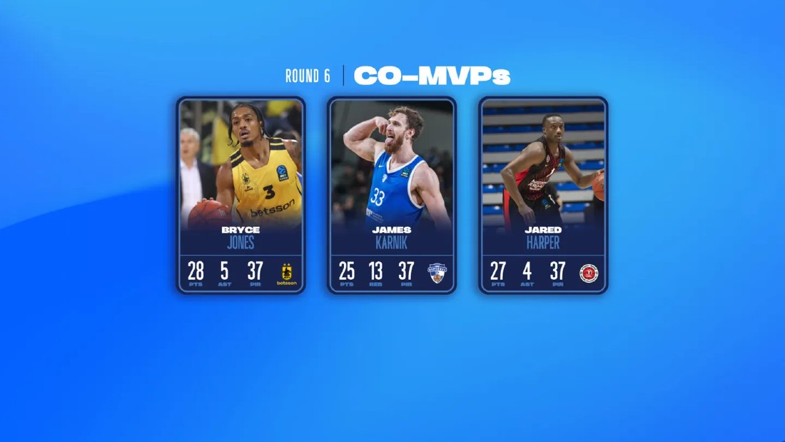 Ο Μπράις Τζόουνς του Άρη αναδείχθηκε πολυτιμότερος παίκτης της 6ης Αγωνιστικής στο EuroCup μετά την ηγετική εμφάνιση του στη νίκη επί της Σλασκ Βρότσλαβ.