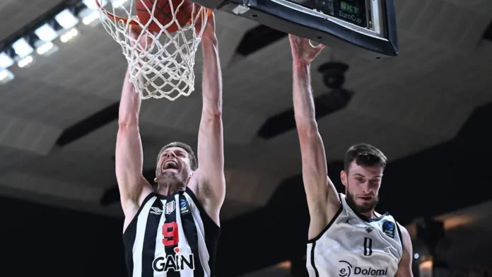 Παρά το άστοχο τρίποντο του Τζόγκελα για τη Τρέντο και η αστοχία των γηπεδούχων στις βολές έδωσαν ελπίδες στους φιλοξενούμενους για το ματς. Ο Μπαγέχε είχε την ευκαιρία να στείλει το ματς στη παράταση αλλά δεν ήταν ψύχραιμος (1/2), με την ομάδα του Αλιμπιγιεβιτς να παίρνει τη πρόκριση στα ημιτελικά του EuroCup.