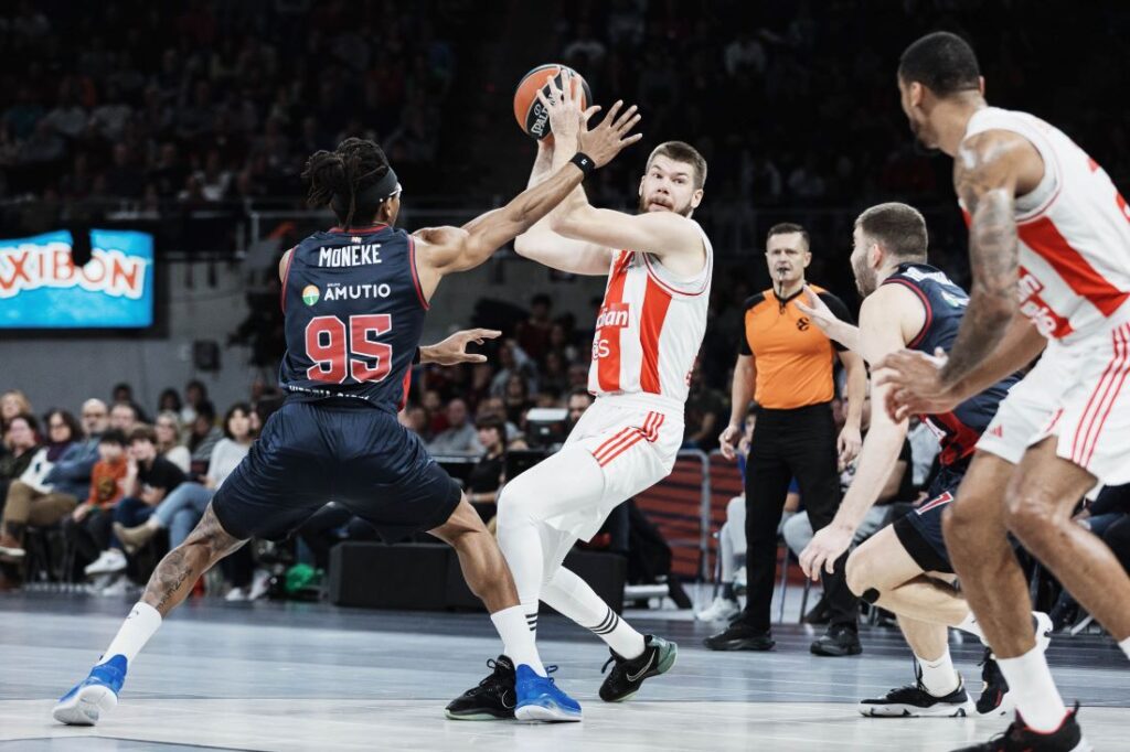 Στον αντίποδα, για την ομάδα του Γιάννη Σφαιρόπουλου, οι Μίλος Τεόντοσιτς και Ρόκας Γκιεντράιτις προσπαθούσαν να κρατήσουν την ομάδα σε απόσταση βολής.
