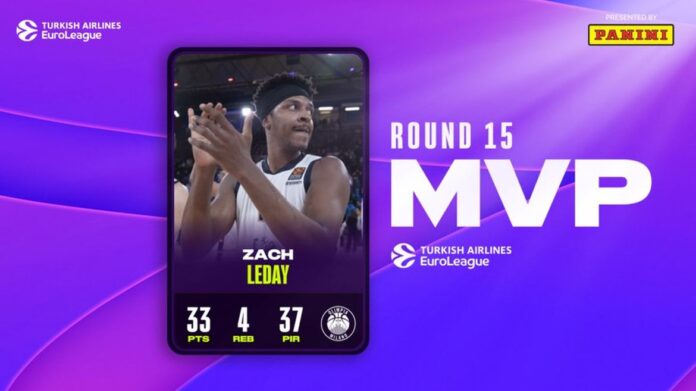 Ο Ζακ ΛεΝτέι ήταν ο απόλυτος πρωταγωνιστής στο διπλό τη Αρμάνι κόντρα στη Μπαρτσελόνα και έτσι δικαιωματικά κατέκτησε τον τίτλο του MVP της 15ης αγωνιστικής της EuroLeague.