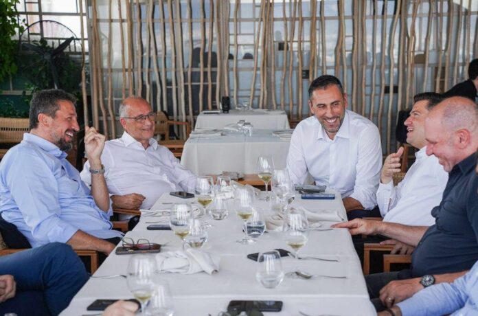 Στο γεύμα παρευρέθηκε ο πρόεδρος της ΕΟΚ, Βαγγέλης Λιόλιος, οι αντιπρόεδροι Γιάννης Ηλιόπουλος και Μπάμπης Μαρκάκης, ο ειδικός γραμματέας Αγγελος Παπανικολάου, τα μέλη του ΔΣ, Δήμος Ντικούδης, Αννη Κωνσταντινίδου και ο γενικός διευθυντής Ντίνος Σβερκούνος.