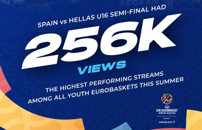 Ο λόγος για τον αγώνα Ελλάδα – Ισπανία, ο ημιτελικός της διοργάνωσης, ο οποίος μεταδόθηκε σε live streaming στο YouTube της FIBA και τον παρακολούθησαν 256.000 φίλαθλοι! Ήταν ο αγώνας με την μεγαλύτερη θέαση από όλα τα πρωταθλήματα Νέων (Παίδων, Εφήβων, Νέων Ανδρών, Νέων Γυναικών, Νεανίδων, Κορασίδων) που έγιναν το καλοκαίρι! Συνολικά τους αγώνες της Εθνικής Παίδων παρακολούθησαν 793.000 φίλαθλοι μέσα από το κανάλι της FIBA και συνολικά η θέαση έφτασε το 1.900.000 views για την διοργάνωση! Μεγαλύτερο ενδιαφέρον έδειξαν για να δουν τα παιχνίδια φίλαθλοι από την Ελλάδα, την Ισπανία, την Γαλλία και την Τουρκία.