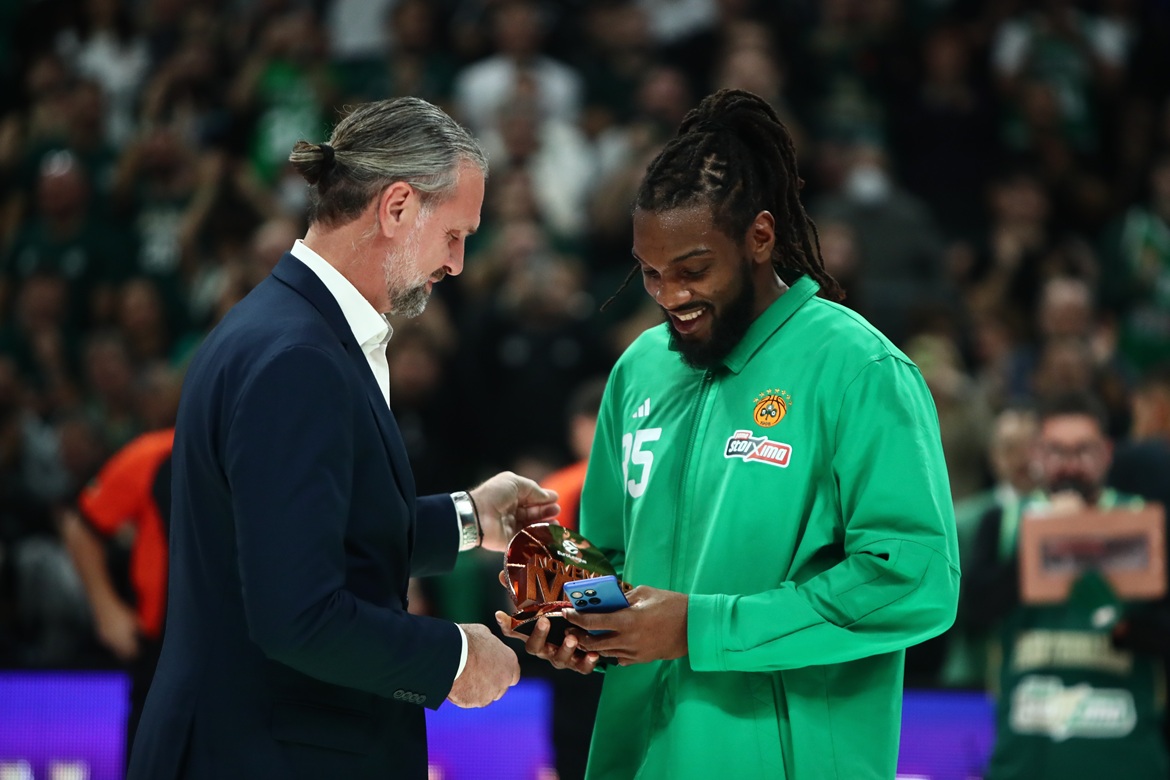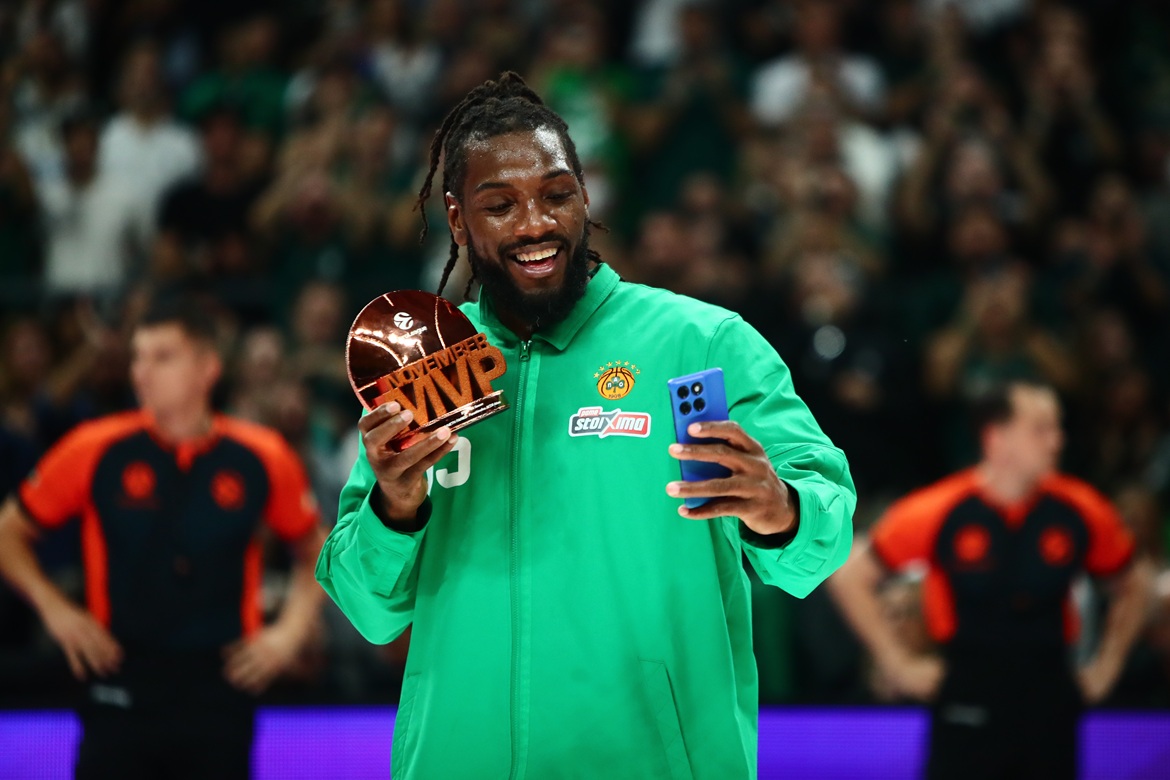 Ο Κένεθ Φαρίντι αναδείχθηκε πολυτιμότερος παίκτης του περασμένου μήνα (Νοεμβρίου) στη διοργάνωση, στον πρώτο του μόλις μήνα με τη φανέλα του «τριφυλλίου», και παρέλαβε από τον Φραγκίσκο Αλβέρτη το βραβείο του MVP πριν το τζάμπολ της αναμέτρησης, με όλο το γήπεδο να τον αποθεώνει. Η χαρά και ο ενθουσιασμός του ήταν απολύτως ξεκάθαρα στην κάμερα, με τον Αμερικανό ψηλό να το γιορτάζει βγάζοντας... σέλφι μαζί με το βραβείο στα χέρια του.