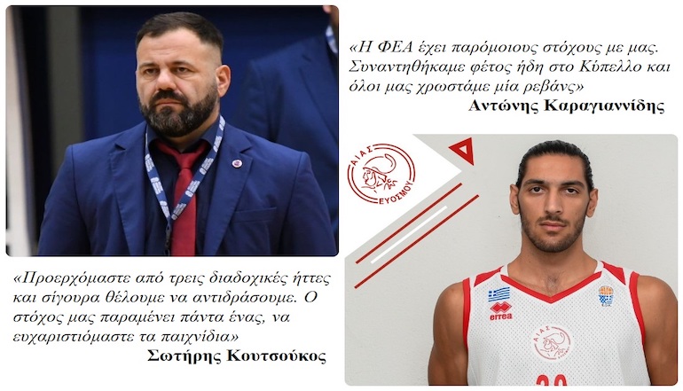 Στον αντίποδα, ο σύλλογος του Ευόσμου μετρά δύο σερί ήττες. «Την προηγούμενη αγωνιστική αντιμετωπίσαμε στην έδρα μας την Ελευθερούπολη. Ένα ματς αρκετά δύσκολο, με μία πολύ καλή ομάδα που βρίσκεται σε εξαιρετική κατάσταση αυτή τη στιγμή και προσπαθήσαμε για το καλύτερο αποτέλεσμα αλλά στο τέλος δεν καταφέραμε να είμαστε εμείς οι νικητές. Τώρα είμαστε προσηλωμένοι στον τελευταίο εκτός έδρας και εξίσου σημαντικό αγώνα με την ΦΕΑ. Ομάδα με παρόμοιους στόχους με μας, με την οποία συναντηθήκαμε ξανά και στο Κύπελλο. Όλοι μας χρωστάμε μία ρεβάνς, πάμε να πάρουμε τη νίκη», επισήμανε ο 21χρονος σέντερ Αντώνης Καραγιαννίδης.
