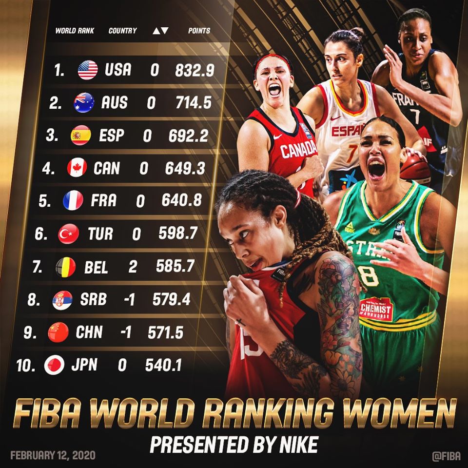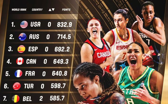 Η πρώτη εξάδα της κορυφής παραμένει αμετάβλητη με τις ΗΠΑ στην πρώτη θέση και τις Αυστραλία, Ισπανία, Καναδά, Γαλλία και Τουρκία. Το Βέλγιο ανέβηκε μετά την πρόκριση για πρώτη φορά στην ιστορία της σε Ολυμπιακούς Αγώνες. Δείτε όλη τη λίστα ΕΔΩ