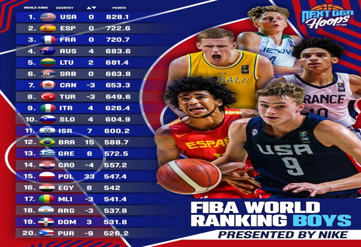 Η FIBA έδωσε στη δημοσιότητα το ranking των «μικρών» εθνικών ομάδων Ανδρών. Η Ελλάδα βρέθηκε στην 13η θέση και έξι θέσεις πιο ψηλά σε σχέση με την προηγούμενη κατάταξη. Στην πρώτη πεντάδα της κατάταξης βρίσκονται ΗΠΑ, Ισπανία, Γαλλία, Αυστραλία και Λιθουανία.