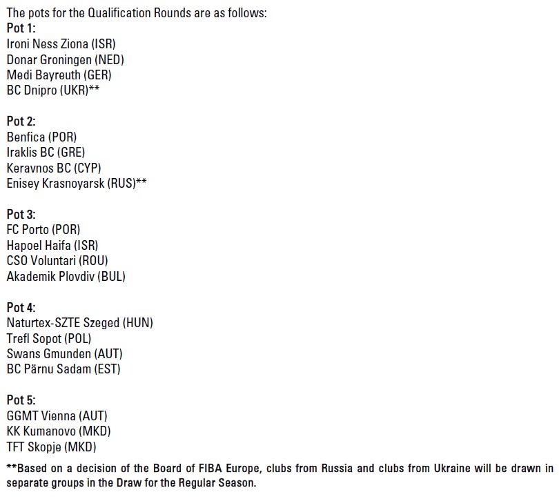 Η FIBA είναι έτοιμη για την κλήρωση του FIBA Europe Cup, η οποία θα πραγματοποιηθεί αύριο στις 13.00 στη Γερμανία. Ο Ιωνικός Νίκαιας θα συμμετέχει στη διοργάνωση και όπως ανακοινώθηκε σήμερα βρίσκεται στο 4ο γκρουπ δυναμικότητας απευθείας στην κανονική περίοδο. Ο Ηρακλής θα αγωνιστεί στην προκριματική φάση.