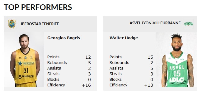 Ο Γιώργος Μπόγρης ήταν η σταθερά της Ιμπεροστάρ Τενερίφε στη νίκη της με 61-51 επί της Βιλερμπάν και ο πρώτος σκόρερ της αφήνοντας τον αγώνα με 12 πόντους, 5 ριμπάουντ, 2 ασίστ και 3 κλεψίματα.