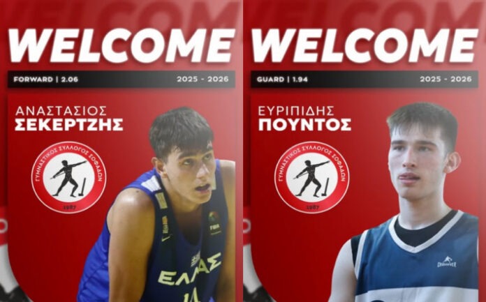 Η ομάδα του Νίκου Κακλαμάνου έκανε δικούς της δυο αθλητές που ανδρώθηκαν στη ΔΕΚΑ, βάζοντας στο ρόστερ του τους Αναστάσιο Σεκερτζή (2,06 – 18 ετών) και Ευριπίδη Πούντο (1,94 – 19 ετών).