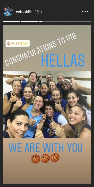 Έτσι και τώρα η Εθνική Γυναικών έστειλε τα δικά της συγχαρητήρια από τα Ιωάννινα όπου βρίσκεται και προετοιμάζεται για το Παγκόσμιο Κύπελλο 2019, στην Εθνική Κορασίδων που δίνει τον δικό της αγώνα στο Μαυροβούνιο. Οι μικρές βρίσκονται στο 4-0 και ήδη προκρίθηκαν στους προημιτελικούς, με έναν ακόμη αγώνα μπροστά τους στον όμιλο (21/8, 16.00 με την Μεγάλη Βρετανία).