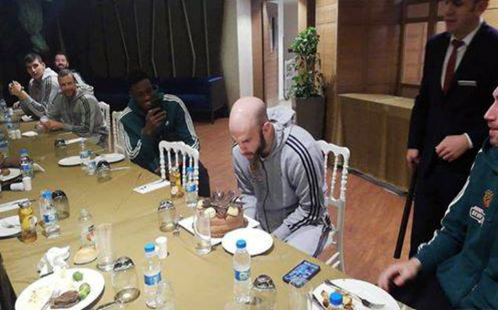 Ο Νικ Καλάθης έκλεισε σήμερα (7/2) 30 χρόνια ζωής, με τους συμπαίκτες να του επιφυλάσσουν μια ιδιαίτερη έκπληξη την ώρα του δείπνου, με τον αγώνα με την Φενέρ να ακολουθεί αύριο (8/2), φέρνοντας μια τούρτα και με τον ηγέτη του Παναθηναϊκού να δείχνει χαρούμενος, σβήνοντας τα κεράκια του πριν από μια ακόμη κρίσιμη αναμέτρηση.