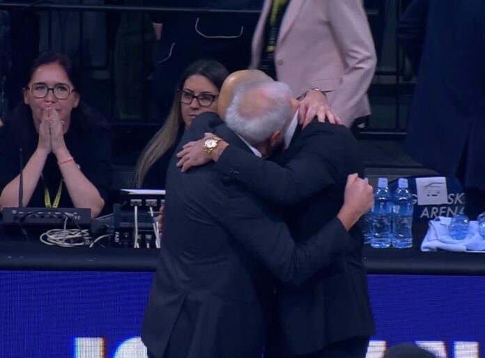 Συγκλονιστική και ιστορική στιγμή με πρωταγωνιστές τους Ζέλικο Ομπράντοβιτς και Βασίλη Σπανούλη μετά τη λήξη του Παρτιζάν-Μονακό. Οι δύο προπονητές αγκαλιάστηκαν ένθερμα μετά από 15 χρόνια.