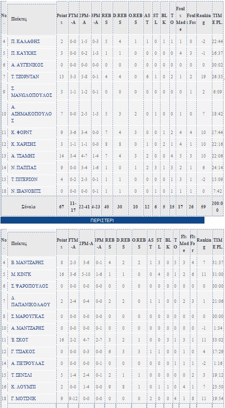 Με τους παίκτες των δύο ομάδων να μην συμμετέχουν στην αποχή του ΠΣΑΚ, το ματς είχε μία απίστευτη εξέλιξη. Το Περιστέρι προηγήθηκε με 16 πόντους στο ημίχρονο (19-35) όμως ο Κολοσσός μπήκε φουριόζος στο δεύτερο, «έτρεξε» σερί 14-0 και πλησίασε στους δύο (33-35) και δευτερόλεπτα πριν το τέλος της τρίτης περιόδου σημείωσε το πρώτο τρίποντο του –με τον Παναγιώτη Καυκή- μετά από 17 άστοχα! Η ανατροπή ολοκληρώθηκε στην τέταρτη περίοδο για την ομάδα του Γιάννη Σφαιρόπουλου που κατάφερε μάλιστα να νικήσει και σχετικά άνετα, με 67-58 παίρνοντας 14 πόντους από τον Άγγελο Τσάμη. Για το σύνολο του Αργύρη Πεδουλάκη τότε, Κινγκ και Σκοτ είχαν από 16 πόντους.
