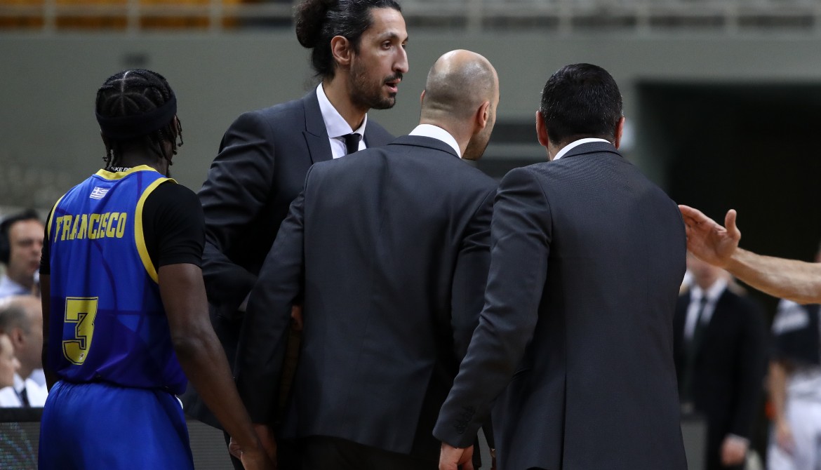 Ο τεχνικός του Περιστερίου απευθύνθηκε στους διαιτητές για μία απόφασή τους με τον προπονητή των «πράσινων» να του απαντά. Η ένταση έληξε σύντομα και οι δύο προπονητές επέστρεψαν στους πάγκους τους για να μοιράσουν οδηγίες στους παίκτες τους έχοντας από μία τεχνική ποινή.