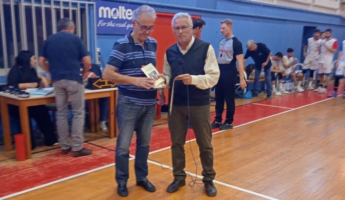 Πριν από το τζάμπολ του αγώνα με τη Νίκη Αμαρουσίου στο κλειστό Δημοτικό Γυμναστήριο Χίου, ο πρόεδρος των γηπεδούχων, Πολύδωρος Στείρος πρόσφερε στον πρόεδρο του σωματείου μας, Αντώνη Τσέκενη δυο ιδιαίτερες εκδόσεις.