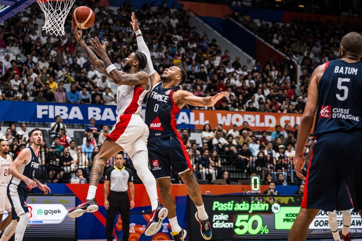 Ο Καναδάς κατάφερε να επικρατήσει με 95-65 επί της Γαλλίας κατέγραψε την πρώτη του νίκη στο Παγκόσμιο Πρωτάθλημα, όσες και η Λετονία που βρίσκεται στην πρώτη θέση. Μπορεί ο αγώνας μέχρι το τέλος του πρώτου ημιχρόνου να είχε τον χαρακτήρα του ντέρμπι, το δεύτερο όμως μέρος δεν ήταν εξίσου ενδιαφέρον αφού η διαφορά που δημιουργήθηκε ήταν πολύ μεγάλη.