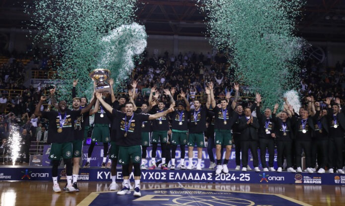Οι «πράσινοι» κέρδισαν στον μεγάλο τελικό τον Ολυμπιακό με σκορ 79-75 και πανηγύρισαν έξαλλα την κατάκτηση.