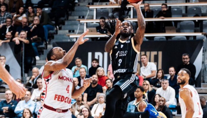 L'action à 4 points signée Paris Lee 🚀💥#BetclicELITE | @LDLCASVEL | @DAZN_FR pic.twitter.com/Kbd52qg7I2