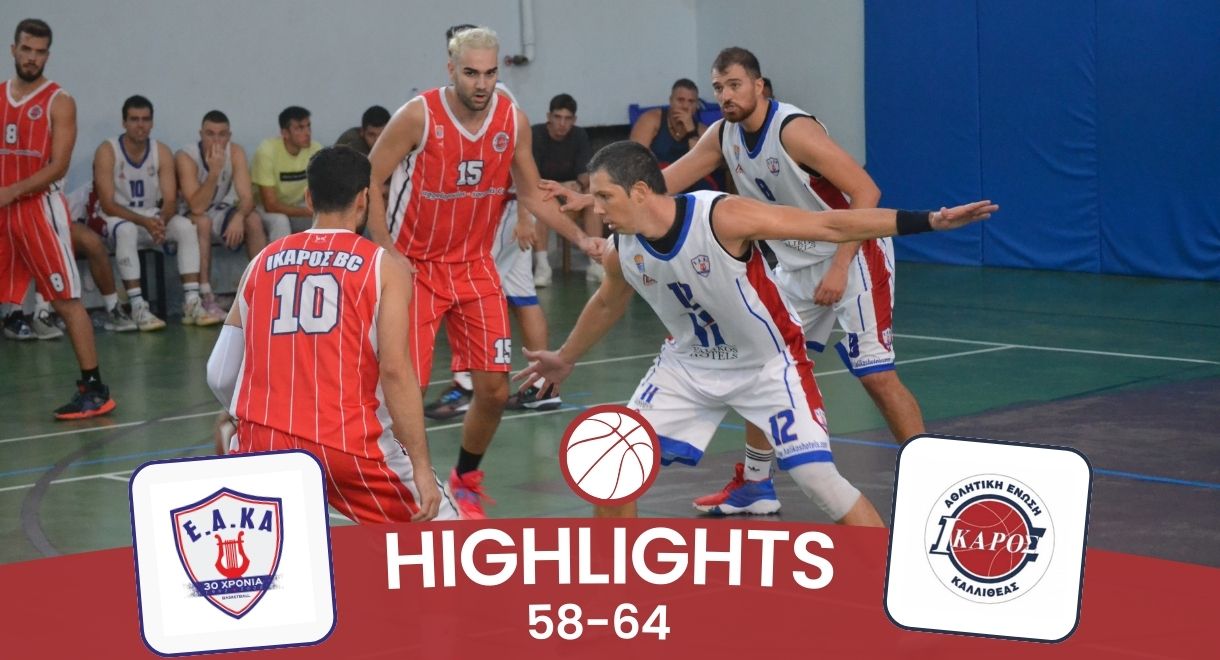 Η ομάδα του Γιάννη Παύλου επικράτησε της ΕΑ Καλύμνου με 64-58, μέσα από ανατροπή, και στο video του «giafkasports.gr» μπορείτε να δείτε τα καλύτερα στιγμιότυπα της αναμέτρησης.