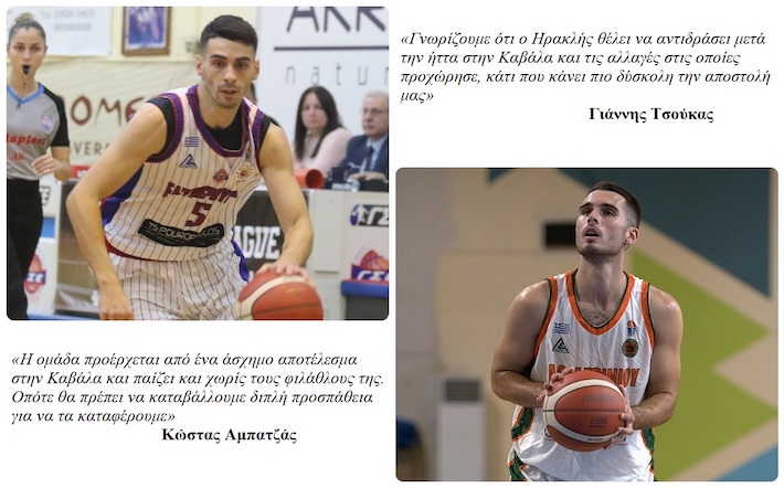 Οι γηπεδούχοι μετά την ήττα από την ουραγό Καβάλα (91-88) αντικατέστησαν τον Γιάννη Ντάγιο με τον Φοίβο Γυμνόπουλο στην τεχνική τους ηγεσία και ψάχνουν αντίδραση. Ο Κώστας Αμπατζάς ετοιμάζεται για το ντεμπούτου του, λίγες μέρες μετά την ένταξή του στο δυναμικό της ομάδας. «Είναι μια πρόκληση για όλους τους παίκτες να φορούν φανέλες μεγάλων ομάδων όπως ο Ηρακλής και να μπαίνουν άμεσα σε μια διαδικασία πρωταθλητισμού. Σίγουρα δεν γνωρίζουμε καλά ακόμη, εμείς οι νεοφερμένοι, την ομάδα και την κατάσταση, όμως έχουμε έμπειρους συμπαίκτες, έμπειρο team και πιστεύω ότι θα καταφέρουμε να προσαρμοστούμε άμεσα και θα μας βοηθήσουν, όπως ήδη κάνουν. Γνωρίζουμε, άλλωστε, το χώρο, τις ομάδες, οπότε δεν πιστεύω ότι θα έχουμε πρόβλημα. Είμαστε έτοιμοι να βοηθήσουμε όπου μας ζητηθεί και θεωρώ πως μπορούμε να έχουμε καλά αποτελέσματα», τόνισε ο 29χρονος γκαρντ και πρόσθεσε: «Ο αγώνας με το Αγρίνιο είναι σημαντικός από πολλές απόψεις, αφού η ομάδα προέρχεται από ένα άσχημο αποτέλεσμα στην Καβάλα και παίζει και χωρίς τους φιλάθλους της. Οπότε θα πρέπει να καταβάλλουμε διπλή προσπάθεια για να τα καταφέρουμε και είμαστε αποφασισμένοι να το κάνουμε. Δουλέψαμε σκληρά όλη την εβδομάδα και πιστεύω ότι όλο αυτό θα «βγει» μέσα στο γήπεδο».
