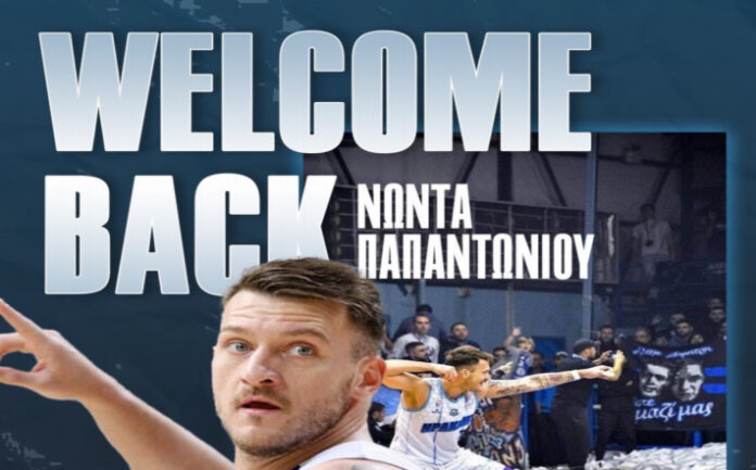 «Ανακοινώνουμε την επιστροφή στην ομάδα μας του Νώντα Παπαντωνίου, που υπέγραψε συμβόλαιο μέχρι το τέλος της τρέχουσας αγωνιστικής περιόδου.