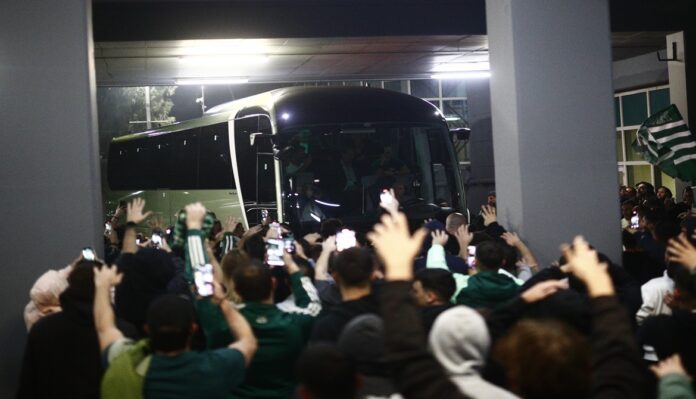 Η αποστολή των πρασίνων έφτασε στο ΟΑΚΑ από το ΣΕΦ λίγο μετά τις 23:00. Οπαδοί του τριφυλλιού ήταν ήδη συγκεντρωμένοι. Καπνογόνα και συνθήματα από 400 και πλέον οπαδούς. Με τους Εργκίν Αταμάν, Κώστα Σλούκα και Ματίας Λεσόρτ να έχουν την τιμητική τους, αλλά αποθέωση και για τον "νέο" Λορένζο Μπράουν που παρακολουθούσε έκπληκτος.