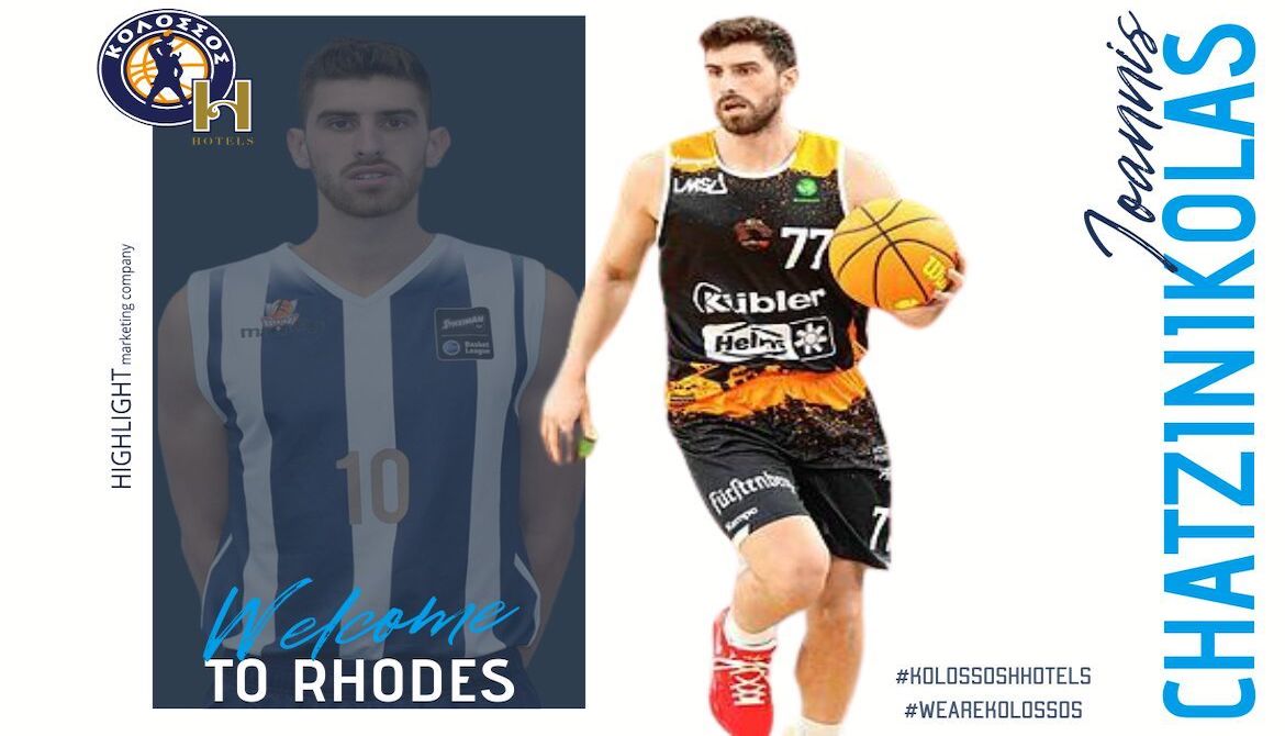 «Η ΚΑΕ Κολοσσός H Hotels ανακοινώνει τη συμφωνία της με τον Γιάννη Χατζηνικόλα. Ο Γιάννης Χατζηνικόλας είναι γεννημένος στις 7 Οκτωβρίου του 1995 και με ύψος 1,93μ. αγωνίζεται ως γκαρντ.