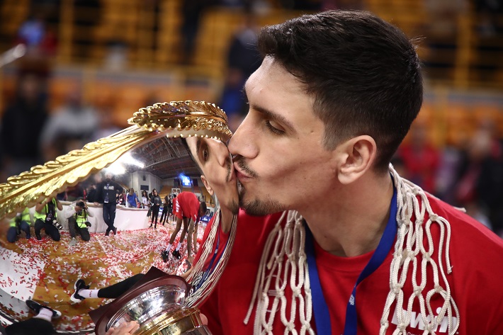 Ο Ολυμπιακός με την κατάκτηση και του Κυπέλλου Ελλάδας έκανε το 2/2 φέτος στους τίτλους, στοχεύοντας πλέον και στα υπόλοιπα δύο τρόπαια, όπως δήλωσε ο Γιαννούλης Λαρεντζάκης στη κάμερα του Olympiacos BC TV.