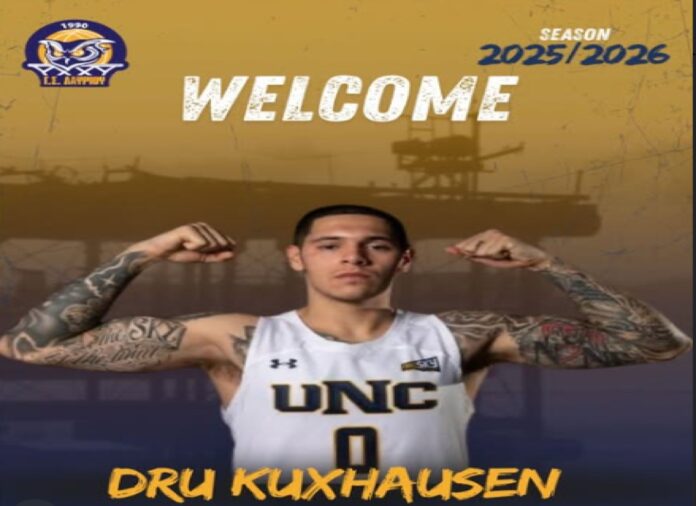 «Η ΚΑΕ Λαυρίου ανακοινώνει την απόκτηση του αθλητή Dru Kuxhausen ενόψει της αγωνιστικής περιόδου 2025-2026. Ο νέος παίκτης της ομάδας μας γεννήθηκε στις 19/12/1998 στο Scottsbluff της Nebraska, έχει ύψος 1,83μ. και αγωνίζεται ως guard. Ξεκίνησε το 2017 να παίζει κολεγιακά μπάσκετ στο Chadron State, δεύτερης κατηγορίας στο NCAA, ωστόσο το 2019 μεταπήδησε στο McNeese State.