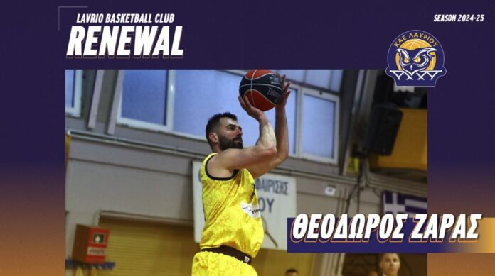 Για τρίτη σεζόν θα συνεχίσει στο Λαύριο ο Θοδωρής Ζάρας, ο οποίος συμφώνησε με την ομάδα της νοτιοανατολικής Αττική για συμβόλαιο μέχρι το τέλος της χρονιάς.