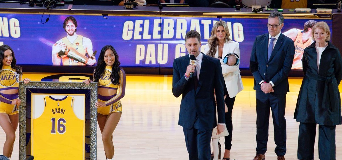 Οι Λος Άντζελες Λέικερς απέσυραν τη φανέλα του Πάου Γκασόλ στην «Crypyo.com Arena», τοποθετώντας την δίπλα σε εκείνη του αδικοχαμένου Κόμπι Μπράιαντ.