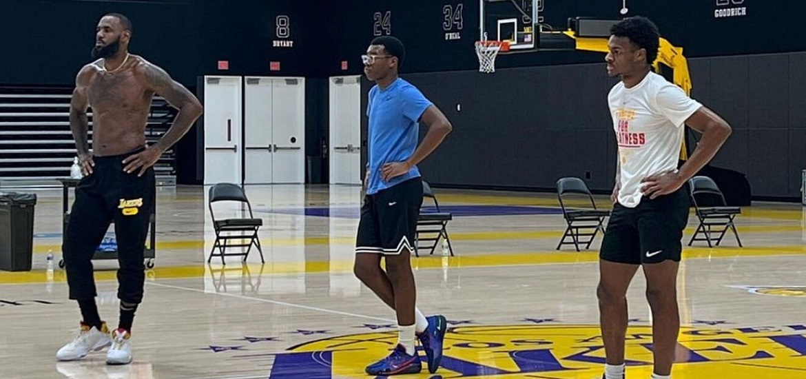 Ο «βασιλιάς» προετοιμάζεται εν όψει της νέας αγωνιστικής σεζόν, που θα είναι η 20ή του στο ΝΒΑ, στις εγκαταστάσεις των Λος Άντζελες Λέικερς, έχοντας στο πλευρό του εκλεκτή παρέα. Οι γιοι του, Μπρόνι και Μπράις, πολύ θα ήθελαν να ακολουθήσουν τα βήματα του πατέρα τους. Προς το παρόν απλώς προπονούνται μαζί του, σημειώνοντας και μερικά εντυπωσιακά καρφώματα...