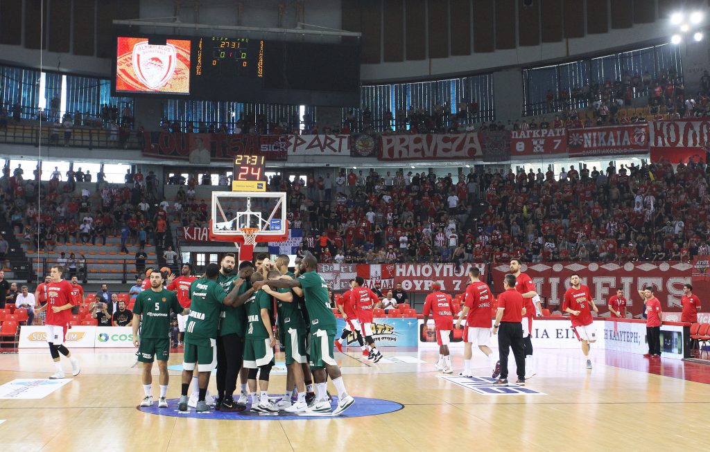 Οι δύο ομάδες πάτησαν παρκέ... επισήμως 29' πριν το τζάμπολ ο Ολυμπιακός και λίγο αργότερα ο Παναθηναϊκός.
