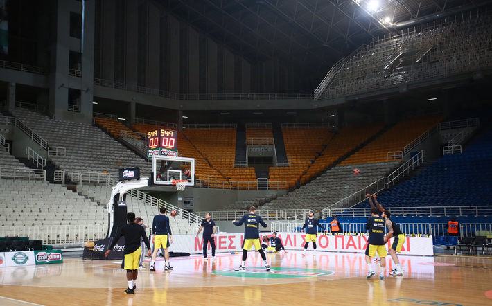 Περίπου μισή ώρα πριν το τζάμπολ της αναμέτρησης μεταξύ Παναθηναϊκού και Φενέρμπαχτσε για την 14η αγωνιστική της Euroleague, το ΟΑΚΑ μοιάζει χαοτικά άδειο και "κρύο" εξαιτίας της τιμωρίας, που επεβλήθει στην "πράσινη" ΚΑΕ για όσα συνέβησαν στο ντέρμπι με τον Ολυμπιακό και ανάγκασε το "τριφύλλι" να παραταχθεί στο παρκέ, χωρίς τη βοήθεια και τη συνδρομή των φιλάθλων του.