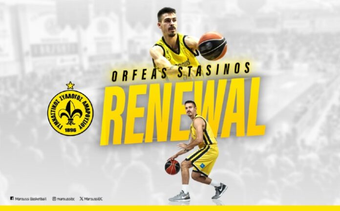 Το Μαρούσι συνεχίζει στην υλοποίηση του σχεδιασμού του, με την ομάδα των Βορείων προαστίων να ανανεώνει και με τον αρχηγό του, Ορφέα Στασινό, ο οποίος για την επόμενη διετία θα συνεχίσει να γράφει την ιστορία του στα «κιτρινόμαυρα» στο Κλειστό του Αγίου Θωμά.