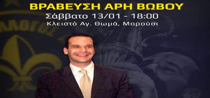 Μια σπουδαία βράβευση ετοιμάζει το Μαρούσι, το οποίο στην αναμέτρηση του Σαββάτου (13/1) με τον Προμηθέα Πατρών θα τιμήσει τον Άρη Βωβό.