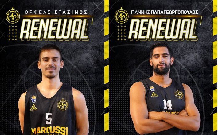 Έτσι, στο κλειστό του Αγίου Θωμά θα αγωνίζονται τη νέα αγωνιστική σεζόν οι Ορφέας Στασινός (1,80 – 24 ετών) και Γιάννης Παπαγεωργόπουλος (1,99 – 31 ετών).