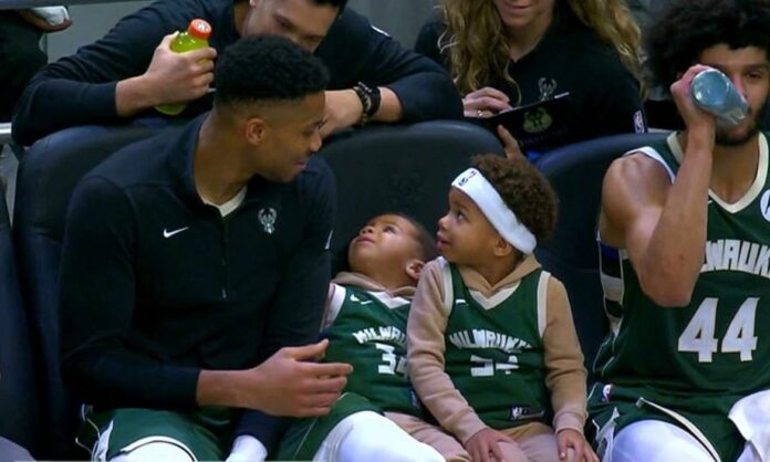 Ο Γιάννης Αντετοκούνμπο δεν ήταν.... μόνος του στο γήπεδο, καθώς είχε και τους δυο του γιους, βρήκε την ευκαιρία περίπου τρία λεπτά πριν το τέλος να τους πάρει μαζί του στον πάγκο της ομάδας.