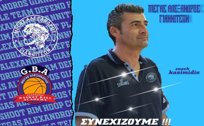 «-Το Δ.Σ του τμήματος basketball του συλλόγου μας ανακοινώνει την ανανέωση της συνεργασίας μας με τον coach Κασιμίδη Γιάννη. Τα λόγια για την σχέση του coach με τον «Μέγα» νομίζουμε ότι είναι περιττά, αφού ξεκίνησε από αθλητής του συλλόγου μας και φέτος συμπληρώνονται τριάντα χρόνια συνεργασίας, στο τιμόνι του συλλόγου μας. Ο coach έχει «υπηρετήσει» το τμήμα basketball του «Μ. Αλεξάνδρου» Γιαννιτσών από όλες τις θέσεις και είναι πάντα δίπλα στην ομάδα, τόσο στα εύκολα όσο και στα δύσκολα.