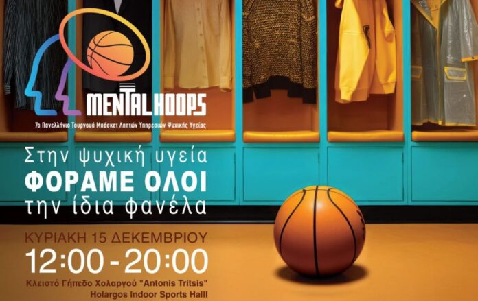 Η Εταιρεία Περιφερειακής Ανάπτυξης και Ψυχικής Υγείας (ΕΠΑΨΥ) με την συνεργασία με την ΕΟΚ, διοργανώνει το 7ο Πανελλήνιο Τουρνουά Μπάσκετ “Mental Hoops”, την Κυριακή 15 Δεκεμβρίου και ώρα 12:00-20:00, στο Κλειστό Γυμναστήριο Χολαργού.