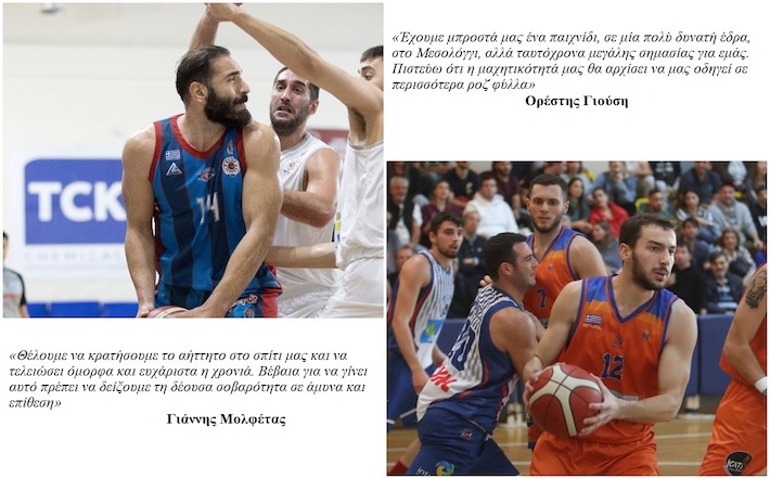 Η ομάδα του Μεσολογγίου θέλει να φτάσει στην έκτη της νίκη. «Είναι το τελευταίο ματς του 2022 κόντρα σε ένα πολύ επικίνδυνο αντίπαλο. Θέλουμε να κρατήσουμε το αήττητο στο σπίτι μας και να τελειώσει όμορφα και ευχάριστα η χρονιά. Βέβαια για να γίνει αυτό πρέπει να δείξουμε τη δέουσα σοβαρότητα σε άμυνα και επίθεση. Να ευχηθώ και σε όλους για την νέα χρονιά που θα έρθει, πάνω απ όλα υγεία», τόνισε ο 30χρονος γκαρντ/φόργουορντ της ομάδας, Γιάννης Μολφέτας.